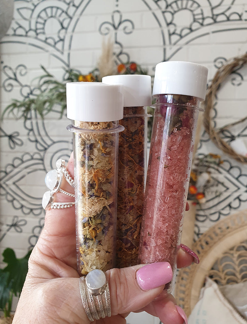 A beautiful trio of Bopo Bath Shots. Each bath shot features a 100% pure blend of essential oils, mineral rich salts, fruit extracts, clays & organic flowers. Ingredients have been carefully selected to deeply nourish skin, whilst helping you to unwind and let go. Includes a Surrender Soak, Goddess Soak & Daydream Soak.