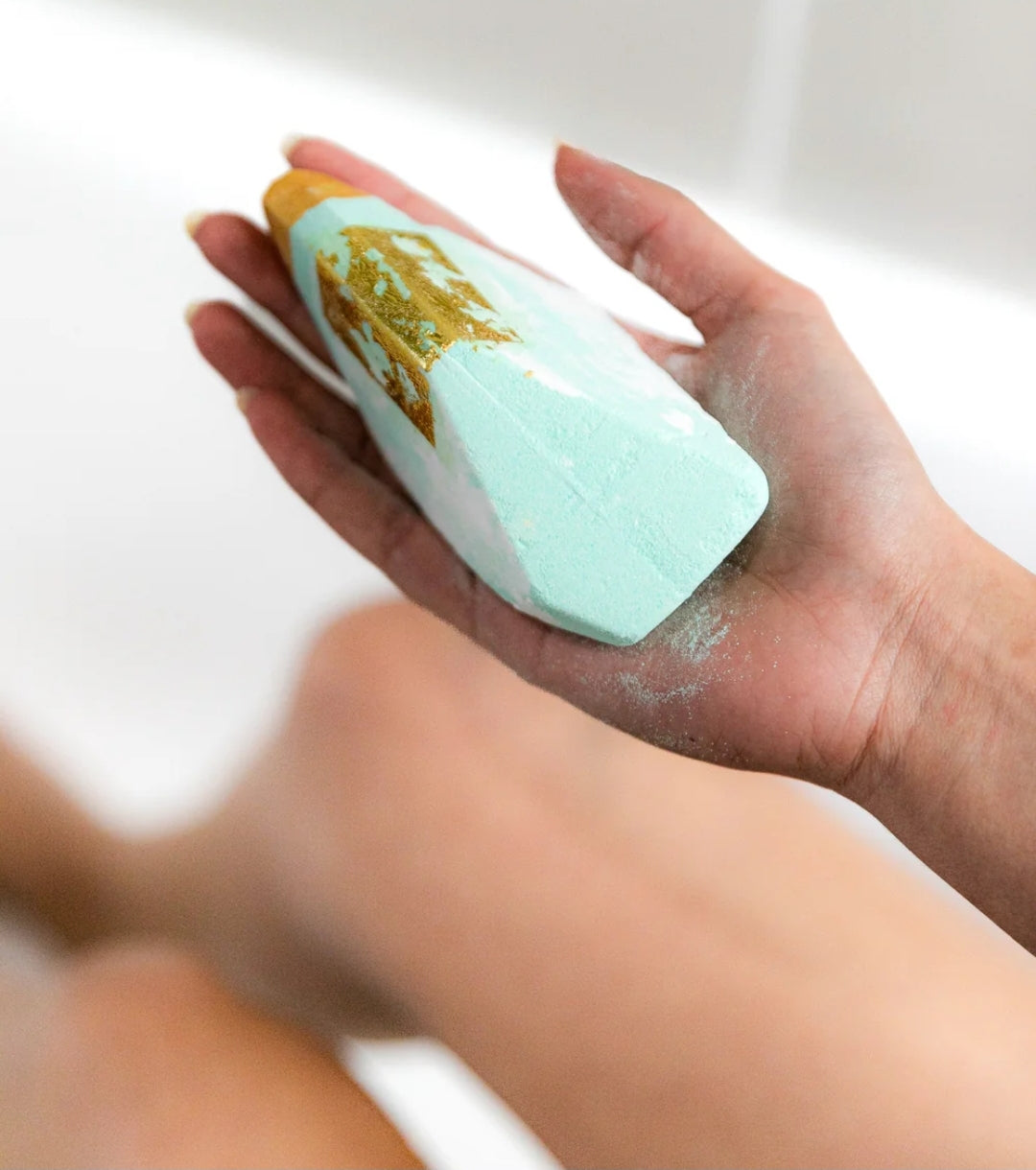 Drop our Aquamarine Crystal Bath Bomb into your tub for a fizzy explosion of colour and aromatherapy. Enjoy the benefits of essential oils as your skin is left feeling silky smooth and refreshed. Our antioxidant-rich blend is specially formulated to deliver an indulgent and relaxing bath experience, while the Aquamarine crystal is an added bonus that amplifies any energy work or intentions.