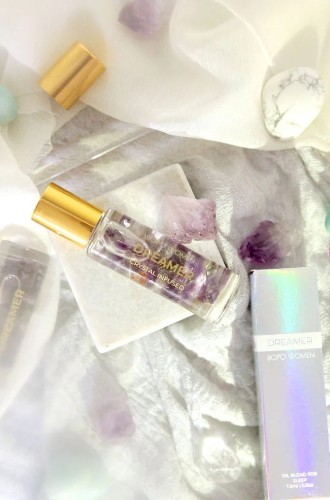 A crystal infused essential oil blend to calm the mind, relax the body and support peaceful sleep. A dreamy mix combining lemon, juniper berry and lavender essential oils. Perfect as a light natural perfume alternative. Features a Dream Amethyst rollerball.