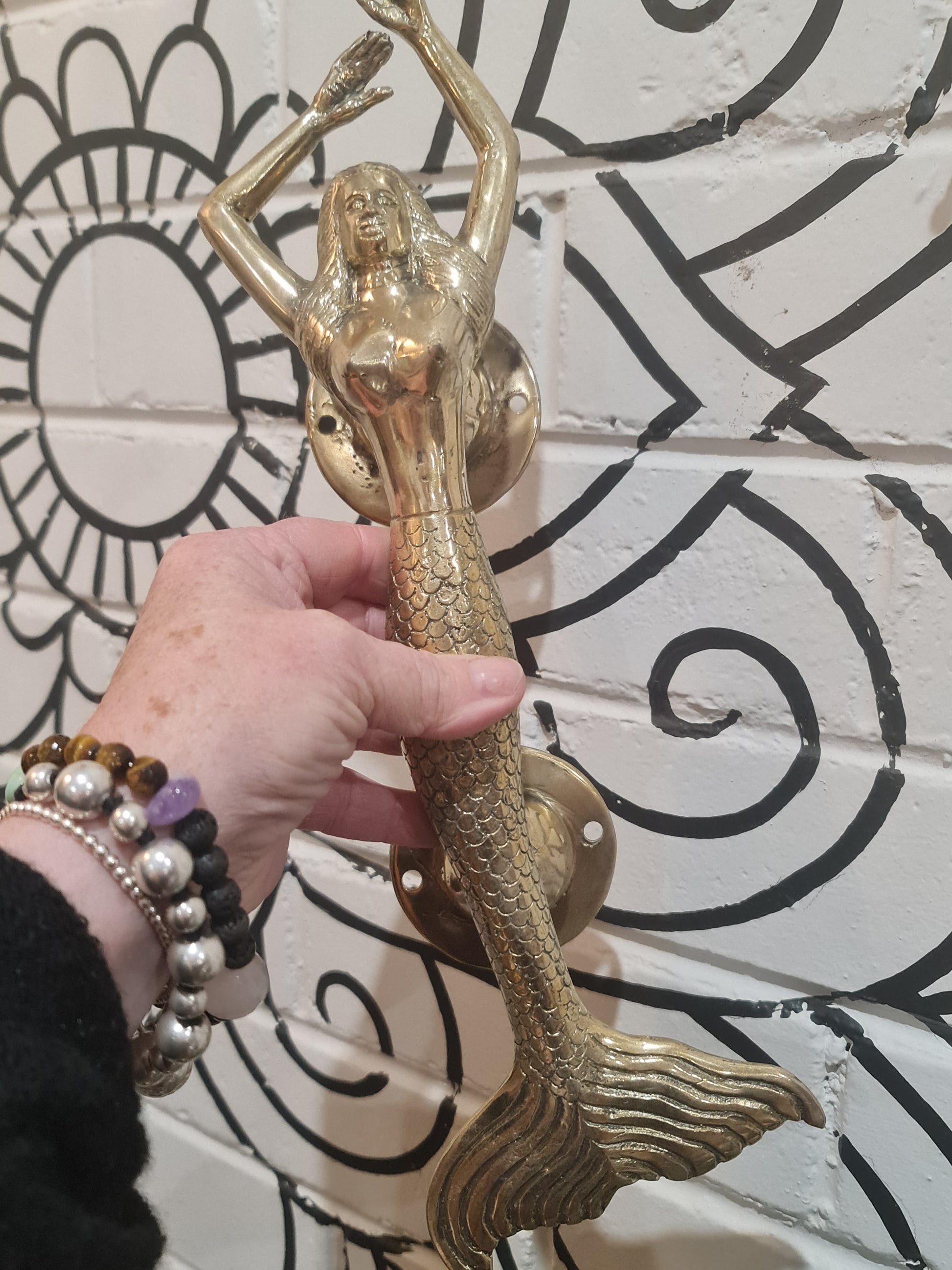 Solid brass mermaid door handle. Beautifully made, solid brass, ready for your boho doors as a stunning talking piece. 4 screws and that's it..instant statement piece.