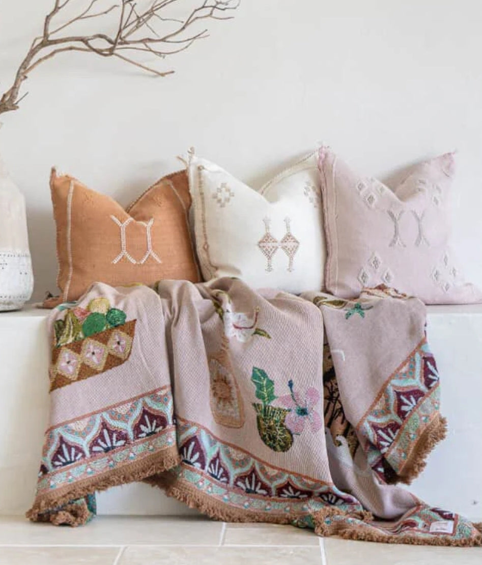 The Sea Song throw is a special collaboration with Good Throw Co. I was thrilled when Jess suggested a mermaid throw but also wanted to use elements from other painting that she loved.  Combining  strong colour & pattern,  we came up with this playful design which brings together our shared love of the ocean, tropical hideouts and of course Mermaids.