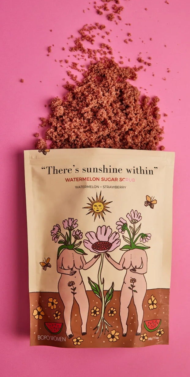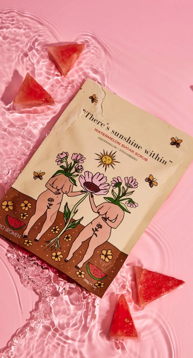 The Watermelon Sugar Scrub is a refreshing nutrient rich super scrub to help you kickstart the day. Skin healing superfoods like watermelon oil, strawberry powder and azuki beans are blended with a soothing natural exfoliant base to leave your body feeling deeply moisturised and smelling like a dream, long after you use it. We've tried all the body scrubs out there - coffee scrubs, sugar scrubs, salt scrubs and everything in between. But none delivered the perfect level of skin exfoliation; some were too soft and others were scratchy and damaged our skin. So we created a unique exfoliating formula that combines sugar, Himalayan sea salt, Pacific sea salt, coconut meal, almond meal and pink clay. We won't tell you it removes stretch marks or makes pigs fly, but if you want silky-soft, smooth and hydrated skin, then this scrub is perfect for you.